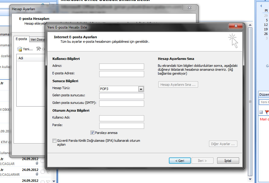 Not: Alt taraftaki "Güvenli Parola Kimlik Doğrulaması (SPA) kullanarak oturum açılsın" seçeneğini işaretlemeyin.